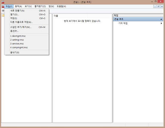 1. 시작 > 실행 > mmc를 입력하여 콘솔 실행