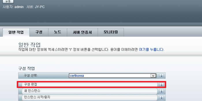1) 관리 콘솔 홈에서 [구성 편집] 메뉴 선택