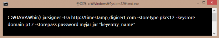 2. 다음 명령으로 myjar.jar 파일을 코드사인 합니다.